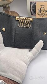 Portachiavi Louis Vuitton originale in pelle Epi nera, con 6 ganci dorati e logo LV inciso.