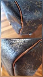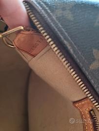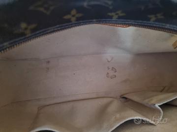 Vendo iconica borsa a spalla Louis Vuitton modello Cité MM in tela Monogram, modello Grande. Un pezzo ORIGINALE (CODICE DENTRO LA BORSA SULLA LINGUETTA, COME DA FOTO), vintage di grande fascino, ideale per chi cerca un pezzo autentico a un prezzo accessibile. Acquistata personalmente a Milano presso il negozio di Via Montenapoleone negli anni 2003/2004 circa. Materiale: Tela Monogram con finiture in vacchetta Dimensioni: Circa 37cm x 21cm x 12cm. Circa. La borsa presenta evidenti segni di usura e necessita di interventi di riparazione: Manico: Uno dei manici in vacchetta è rotto/staccato all'altezza dell'attaccatura e richiede riparazione. Cerniera: Una delle linguette (tira-lampo) in metallo dorato staccata: il meccanismo della zip è perfettamente funzionante. Interni: La fodera interna presenta macchie visibili dovute all'utilizzo negli anni. Esterno: La tela Monogram è in buone condizioni generali, ma la vacchetta dei profili è segnata e anche quella dei manici è scurita soprattutto centralmente. Come si nota dalle immagini, la parte superiore dove scorre la zip non è più perfettamente rigida ma tende a curvarsi,rientrare all'interno. Guardare bene le foto prima di acquistare e se necessitate posso inviarne di altre.