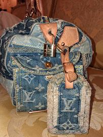 Materiale: Denim di cotone certificato con trama Monogram e finiture in pregiata pelle Vachetta naturale.
