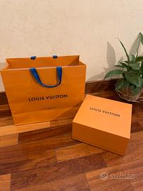 Vendo scatola originale Louis Vuitton, condizioni perfette, ideale per diversi oggetti come pochette LV , accessori, borse, scarpe, foulard, stole e sciarpe . ( busta grande in foto venduta separatamente, per info contattatemi ) possibile acquistare il set completo, ottimo per idee regalo.