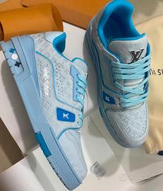 Vendo Louis Vuitton Trainer, taglia 42, nuove e mai indossate. Complete di scatola e accessori. Modello con monogram e dettagli azzurri, elegante e molto richiesto. Perfette per outfit casual e streetwear. Spedizione veloce e tracciata 👍