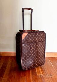 Vendo splendido trolley originale Louis Vuitton modello Pégase 45, icona intramontabile della maison, risalente Giugno 2005. Perfetto per chi cerca un accessorio di lusso vintage, elegante e funzionale, ideale sia per viaggi brevi che come pezzo da collezione. Caratteristiche: Modello: Pégase 45 Brand: Louis Vuitton Periodo: primi anni 2000 Materiale: tela Monogram con finiture in pelle naturale Colore: classico Monogram marrone Codice: SP0065 Manico telescopico e ruote funzionanti Interno capiente con scomparti organizzati Il trolley è usato, con normali segni del tempo coerenti con l’età: patina naturale sulla pelle piccoli segni d’usura sulle ruote (come da foto) interni in ottime condizioni Prodotto 100% originale Louis Vuitton. Oggetto vintage, sempre più difficile da reperire in queste condizioni. Spedizione accurata e tracciata. Possibilità di ritiro a mano.