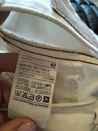 lounghette jeans bianco con zip e bottone tasche con strass tg. 42