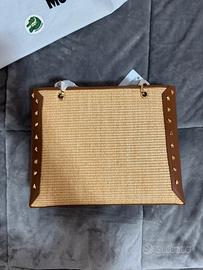 La Love Moschino shopper bag unisce stile estivo e dettagli glamour in un accessorio versatile e di tendenza. Realizzata in rafia intrecciata con inserti in similpelle, si distingue per il suo design naturale arricchito da eleganti finiture color oro. Il modello è dotato di comodi manici lunghi, ideali per essere portata a spalla, e di una pratica chiusura con zip che garantisce sicurezza e funzionalità. Sul fronte spicca il logo in lettering metallico, accompagnato da dettagli decorativi dorati che donano un tocco raffinato e contemporaneo. Perfetta per completare look casual-chic o outfit estivi, è la borsa ideale per chi cerca praticità senza rinunciare allo stile. -Condizioni: nuova con cartellino✅ -Spedizione veloce e protetta📦 #moschino #bag #sacàmain #femme #donna #borsa #tracolla #girl #woman #fashion #design #trend #bolsa #tasche #tas #sac #camel #beige #leather #brown #marrone #marron #vimini