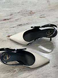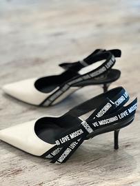 Vendo décolleté Love Moschino modello JA10027G1GIE0100 (“Scarpa D. Spillo 70”), colore bianco/nero, punta in pelle e fascia elastica con logo.