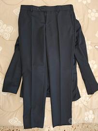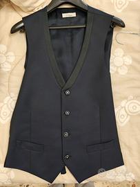 Si accettano offerte! Prezzo trattabile Abito da Sposo da cerimonia Lubiam mod. 3464/4 con gilet coordinato e plastron (cravattone) grigio chiaro con puntini neri. Tutto l'abito e il gilet hanno i bottoni gioiello con Swarovski. Taglia: 48 Colore: Blu Condizioni: ottime (come da foto) Materiale: Lana, Viscosa, Poliestere Dettaglio misure Giacca: Lunghezza maniche: 62.5 cm Spalle: 42 cm Pantalone: Lunghezza gamba: 98 cm Larghezza gamba: 16 cm Cavallo: 76 cm Gilet: M