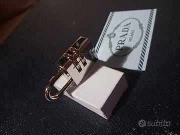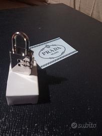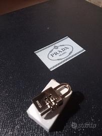 lucchetto Prada con combinazione, originale, in metallo argentato.