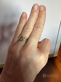Lucciola pomellato con punto luce diamante, oro bianco e oro rosa. Taglia 52/53