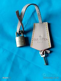 Nuovo, mai usato, piccolo luchetto da borsa in ottone con scritta Louis Vuitton Paris made in France, con un punzone R in un piccolo cerchio. Non so se è autentico o no.