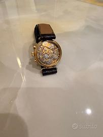 OROLOGIO DA POLSO CON CRONOMETRO, CALENDARIO COMPLETO E FASI LUNARI, LUCIEN ROCHAT ANNI ’90, argento IN ORO 18kt tre quadranti ausiliari a ore 3, 6 e 9 rispettivamente con registro dei minuti, delle 12 ore con apertura per le fasi lunari e secondi continui, lancette a foglia, secondi cronografici al centro, lancetta per il datario oro a freccia. Prezzo Accetto e valuto scambi con auto a benzina per bambini anni 90 agostini junior
