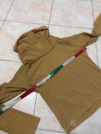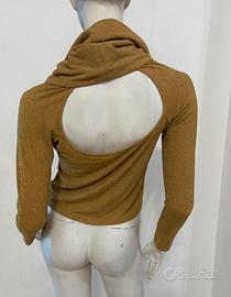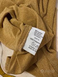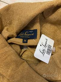 Maglia dolcevita colore oro lurex, con particolare apertura nella schiena. LUISA SPAGNOLI, taglia M, le misure in cm sono riportate in foto. Nuovo con cartellino.