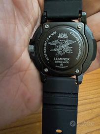 Vendo Luminox Navy Seal seie 3000/3009. Orologio in ottime condizioni, revisionato il 13-04-2024 compresa prova di impermeabilità. Full set, cinturino in gomma nuovo e cinturino in tessuto usurato, ma ancora usabile.