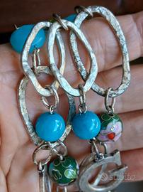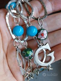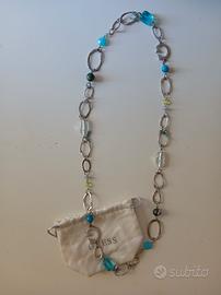 Collana lunga Guess, anelli satinati, color argento, intermezzi azzurri. Lunghezza in foto. Comprata in un negozio monomarca Guess. Come nuova.