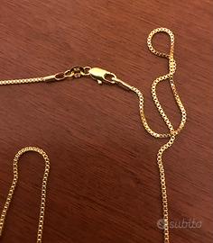 Lunga collana quadrangolare (65 cm.) placcata in oro 18 kt con punzone 18k GF, come da foto.