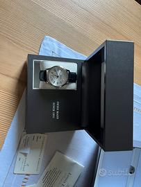 Orologio uomo linea Heritage con movimento Swiss Made automatico con giorno e datario, cinturino in pelle con chiusura deployant, vetro zaffiro, quadrante silver con numeri romani