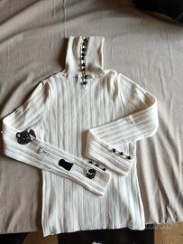 lupetto in morbida viscosa, con applicazioni in rilievo, colore bianco latte Tg s