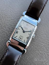 Vendo splendido Lusina Genève in stile Art Déco, animato dal movimento a carica manuale Swiss Made calibro FHF29. La cassa cromata misura 22 x 37 mm (escluse corona e anse) ed è in ottime condizioni estetiche e funzionali.