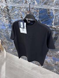 La T-shirt in cotone. Il modello si distingue per la lavorazione al rovescio, che caratterizza anche il dettaglio sul retro. Le iniziali LV in rilievo sul davanti, appena sotto il colletto.