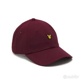 Cappello in cotone disponibile in due colorazioni black e vinaccia, con costruzione a 6 pannelli e occhielli di areazione. Visiera rigida ricurva, chiusura scorrevole sul retro con fibbia in metallo e ricamo logo in tonalità, e dettaglio aquila iconico Lyle & Scott applicato sul fronte.