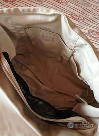 Borsa/bisaccia in resistente cotone grosso, completamente foderata e provvista di numerose tasche sia esterne che interne. Colore verde chiaro coloniale. Condizioni ottime in quanto nuova, mai usata. Marca Machu Picchu, che garantisce l'estrema accuratezza di tutte le sue rifiniture. Unisex, perfetta per la scuola, per il lavoro ed anche per il tempo libero. Misure cm 38 x h 28 x 12. Originale.