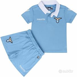 Meraviglioso completino per neonato della S.S. LAZIO realizzato dalla MACRON. Nuovo con etichette e scatola ufficiale.