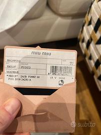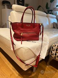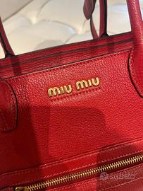 Borsa madras 30x20cm approx 100% originale Pelle rossa Tasca zip esterna Frontale con lettering metallo oro miu miu Doppi manici Tracolla Foderata con tasca interna Certificato dustbag