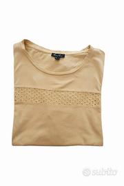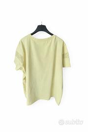 Maglietta curvy Rosa Thea in 100% cotone, pensata per unire eleganza e comfort. Taglia L calibrata, corrispondente a una 54, con vestibilità comoda e valorizzante. Tessuto morbido e naturale, ideale da indossare in ogni stagione. Colore verde fresco e luminoso, perfetto per dare vitalità a qualsiasi outfit. Raffinati dettagli traforati su petto e maniche, per un tocco femminile e ricercato. Condizioni eccellenti, come nuova e pronta per essere indossata. Versatile e facile da abbinare a jeans, pantaloni morbidi o gonne per un look casual‑chic. Un capo ideale per chi desidera sentirsi bella, comoda e sicura di sé.