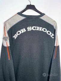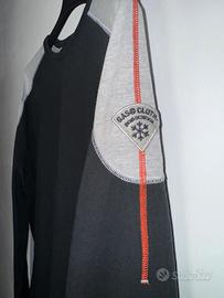 Maglia girocollo Bob School con collo rifinito in costina, colore nero con inserti grigi sulle spalle e cuciture arancioni.