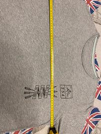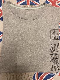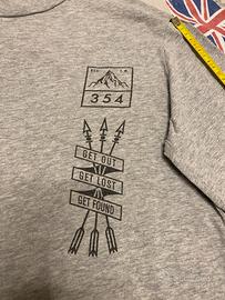 Maglia a maniche lunghe da uomo Benetton. Taglia L Lunghezza 65 cm Larghezza spalle 50 cm Lunghezza manica 60 cm Larghezza da ascella ad ascella 56 cm. - Colore grigio melange. - Stampa grafica sul lato con montagne e frecce. - Scritta GET OUT GET LOST GET FOUND sul lato.