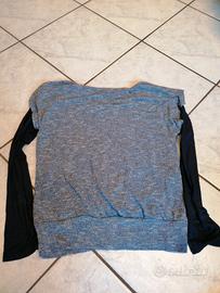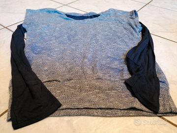 maglia blu doppia a maniche lunghe con manica corta sopra fascia in vita viscosa 95% elasticizzata 5% made in Italy maglietta primaverile autunnale adattabile sia di sera che di giorno con un jeans molto comoda messa poche volte è una s_m
