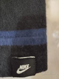 Maglia a maniche lunghe Nike Sportswear, a strisce orizzontali blu scuro e nere, con taschino, bottoni sul colletto, taglia M, 100% cotone, buona vestibilità; senza difetti e indossata pochissime volte.