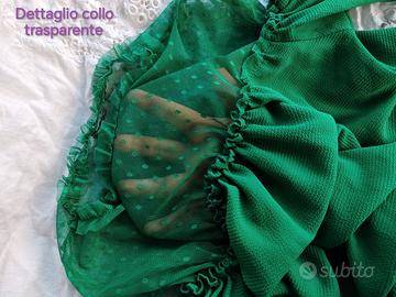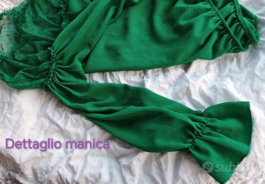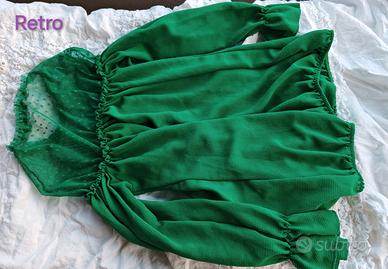 💚Per chi cerca un tocco di eleganza e non vuole passare inosservata, unendo femminilità e carattere in un unico capo. 💚Attraverso il raffinato gioco di trasparenze del tulle a pois (zona spalle e petto) e un taglio morbido che valorizza la silhouette con leggerezza. 💚Brand: Pinokkio Colore: Verde Smeraldo Taglia: L (non c'è scritto nella maglia ma è la taglia che porto io) Dettagli: Scollo e polsini arricciati, inserto in tulle trasparente. Ottime condizioni. Vendo perché non è nel mio stile.