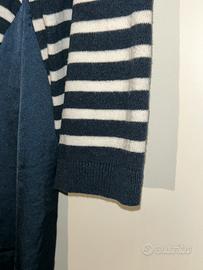 Maglia a righe bianco e blu con gonna integrata in tessuto effetto seta, taglia M.