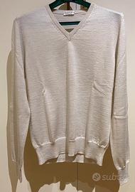 Maglia 100% LANA, da uomo con scollo a V, di badiali MADE IN ITALY, taglia M, polsini e fondo con cannolè elasticizzati.