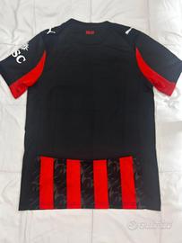Vendo maglia ufficiale dell'AC Milan per la stagione 2025/2026, versione Home. Il design di quest'anno celebra l'identità rossonera con le iconiche strisce verticali arricchite da un'esclusiva grafica a fiamme, ispirata all'energia e alla passione del club.