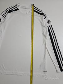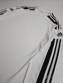 🔹️ Maglia Adidas a manica lunga bianca con 3-stripes nere. Look sportivo pulito, ideale per allenamento, calcio o outfit streetwear. Tessuto leggero e traspirante.