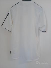 Maglia Adidas Real Madrid originale indossata nella stagione 2003/2004 nella prima e unica stagione di Carlos Queiroz alla guida del Real Madrid dopo aver preso il posto di Vicente del Bosque. Il Real Madrid era campione in carica della Liga dalla stagione precedente, ma ha concluso con un deludente quarto posto in classifica, a 7 punti dai campioni del Valencia. Indossata anche quando il Real Madrid è stato eliminato nei quarti di finale di Champions League, mentre il club cercava di conquistare il suo decimo titolo europeo, venendo eliminato per i gol in trasferta contro il Monaco.