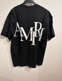 T-shirt AMIRI in cotone nero, con logo bianco stampato sul petto.