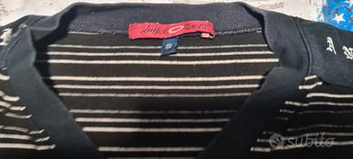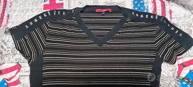 Maglia maniche corte con collo a V e scritta Angel Devil sulle spalle. Taglia S