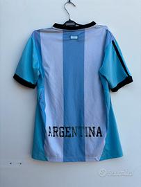 • Dettagli Posteriori: Piccola bandiera argentina ricamata sotto il colletto e maxi stampa vintage "ARGENTINA" sulla parte inferiore.