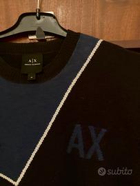 Pullover maglia da uomo Armani Exchange bicolore nero e blu , con dettagli e logo sul petto in contrasto. Logo nel fianco sinistro come da foto .