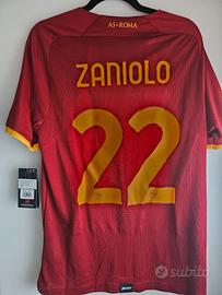 Vendo maglia ufficiale della Roma di Nicolò Zaniolo, autore del gol decisivo nella finale di Conference League 2022 contro il Feyenoord. La maglia è originale, completa di patch ufficiale della Conference League e della finale di Tirana sul petto.