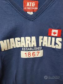 Stile casual con vibe nordamericana: maglia a maniche lunghe firmata ATC All Things Canadian, perfetta per la mezza stagione. Colore blu intenso con stampa frontale “Niagara Falls Established 1867” e dettaglio bandiera canadese per un look sportivo e pulito. 👕 Caratteristiche: • taglia L • 100% cotone • maniche lunghe con bande decorative • scollo a V ✨ Condizioni perfette – mai indossata (nuova) Ideale per outfit casual, tempo libero o per chi ama lo stile college/americano. Consegna di persona disponibile anche su Milano (in settimana/no weekend, in base agli impegni).