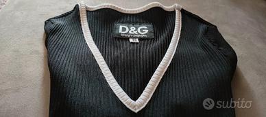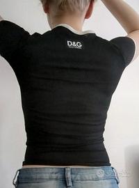 Maglietta aderente a costine D&G, tessuto sintetico, colore nero con dettagli bianchi, taglia 40 (IT), vestibilità ridotta, indossata pochissime volte, come nuova.