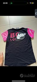 Maglietta a maniche corte Boy London, colore nero con maniche rosa glitterate super particolari.