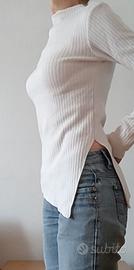 Maglia bianca a costine Stradivarius – taglia M