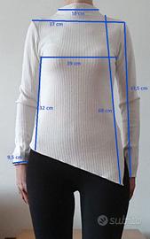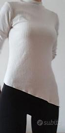 Maglia bianca a costine firmata Stradivarius, taglia M (misure dettagliate in foto). Modello a maniche lunghe con fondo asimmetrico, super attuale e facile da abbinare. Vestibilità comoda ed elasticizzata, valorizza la figura senza stringere. Perfetta per look casual o più curati, ideale in ogni stagione. -Colore bianco -Tessuto a costine elasticizzato -Taglio asimmetrico sul fondo -Maniche lunghe -Condizioni ottime. Sta benissimo con jeans, pantaloni eleganti o gonne! Spedizione rapida #maglietta #magliettabianca #magliamanichelunghe #Stradivarius #tagliaM