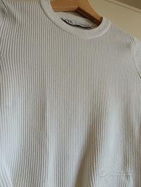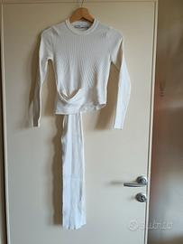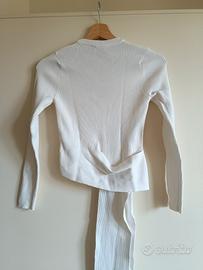 Maglia a maniche lunghe bianca, dotata di una fascia da legare in vita.