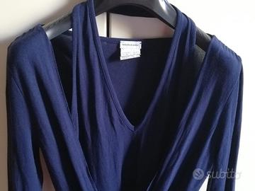 Maglia blu a maniche lunghe, di taglia Small, in Modal al 73% ed Elastan al 7 %. Molto gradevole al tatto e da indossare. Usata poco. Marca Intimissimi. Il Modal è un fibra naturale ottenuta dai legni di faggio.