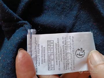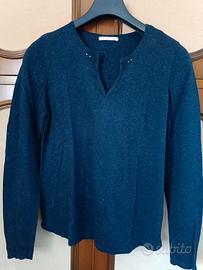 maglia donna blu, misto cotone e fibra metallizzata, leggera, manica lunga, a V, indossata poche volte